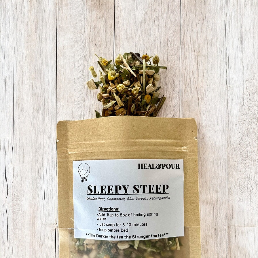 Sleepy Steep targets sleep apnea and insomnia, while helping to reduce anxiety and stress. This herbal blend also offers potential benefits such as easing menstrual and stomach cramps, aiding with digestive issues, and providing anti-inflammatory properties for the nervous system.